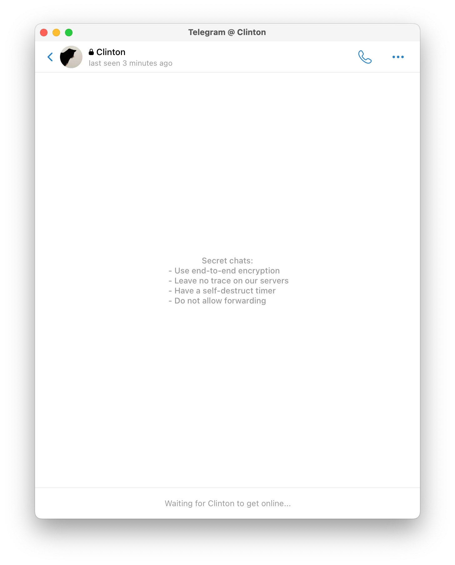 Secret Chats also include several advanced privacy features: self-destruct messages, no message forwarding, and optional screenshot protection depending on your device.