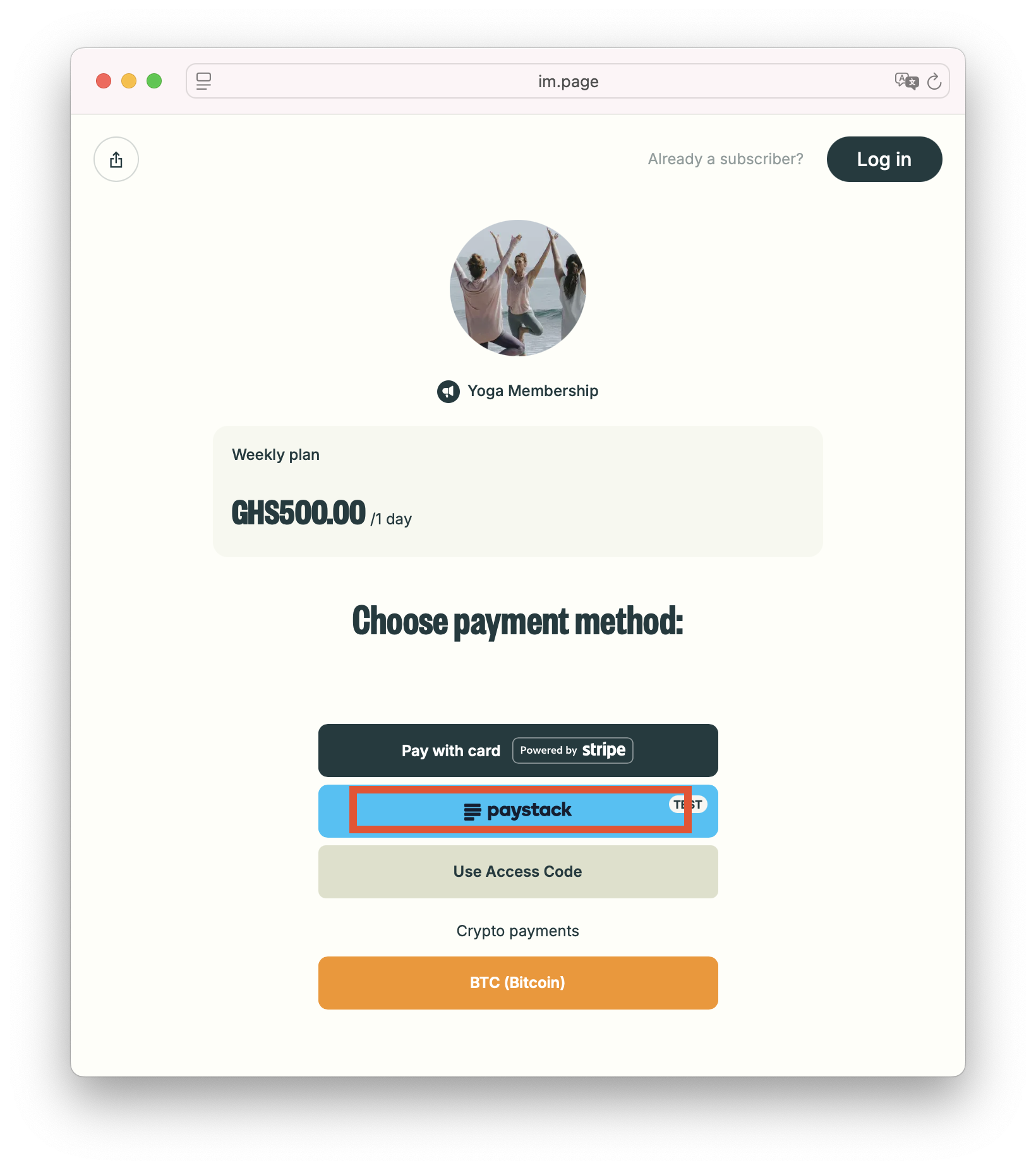 - Price plans in NGN, GHS, KES, ZAR, or USD. If you use another currency, the Paystack option won’t appear.