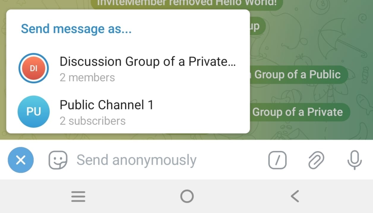 Anonymous Chat as a Telegram Channel or Group Admin