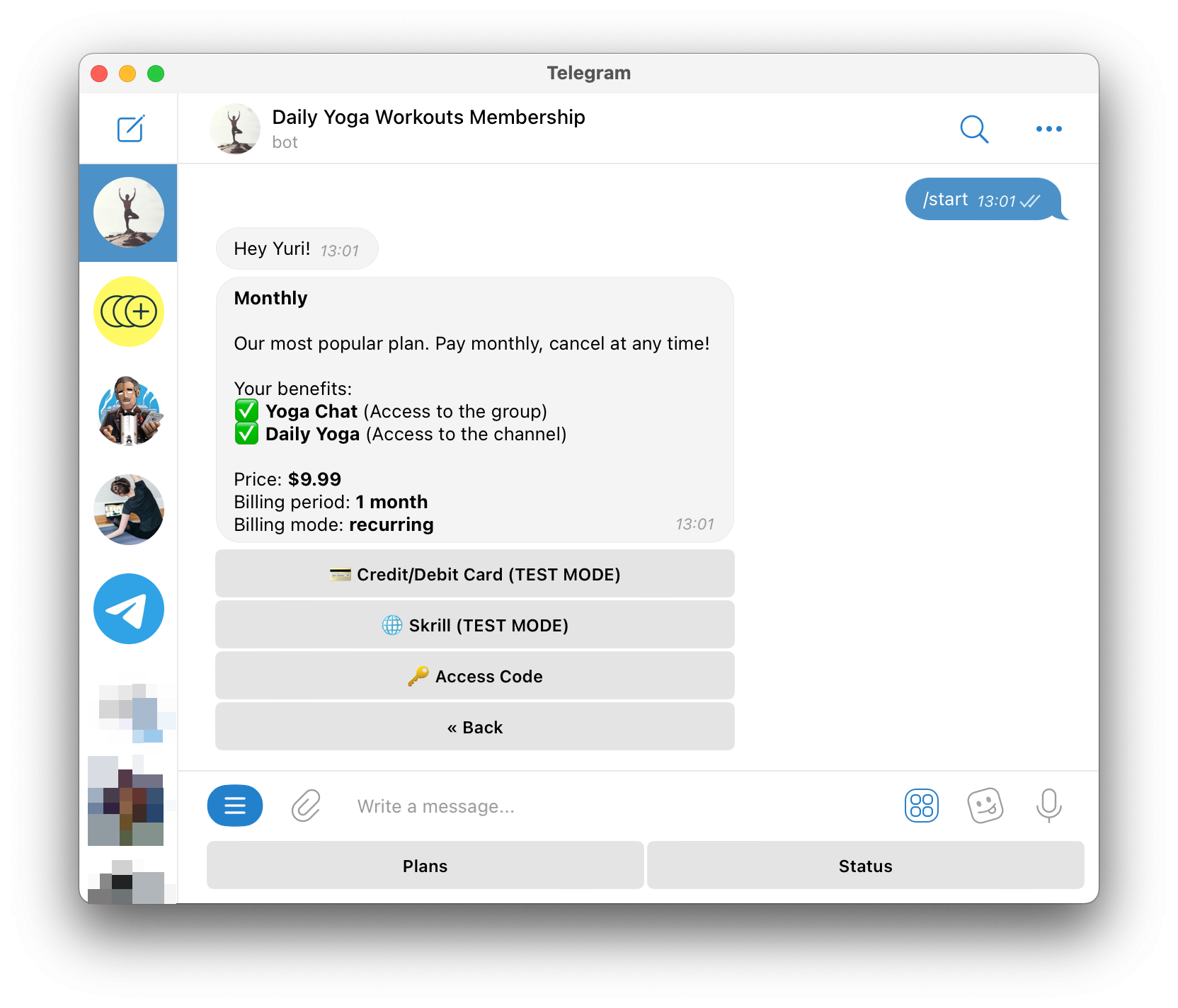 Offer limited-time free trials to give potential subscribers a taste of what your bot offers. A free trial period allows users to explore the features and benefits without any financial commitment. Clearly communicate the duration of the free trial and what users can expect during this period. For example, “Enjoy a 7-day free trial with full access to all premium features. No credit card required.” With InviteMember you can offer free trials with, or without, card upfront.