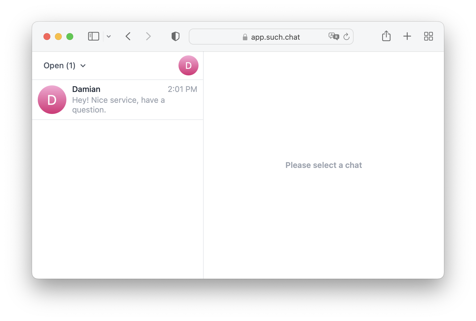 - Chat Organization: SUCH provides a web app where businesses can organize their chats into Open, Snoozed, and Closed categories. This ensures that no customer query goes unnoticed and allows for efficient follow-ups and issue resolution.