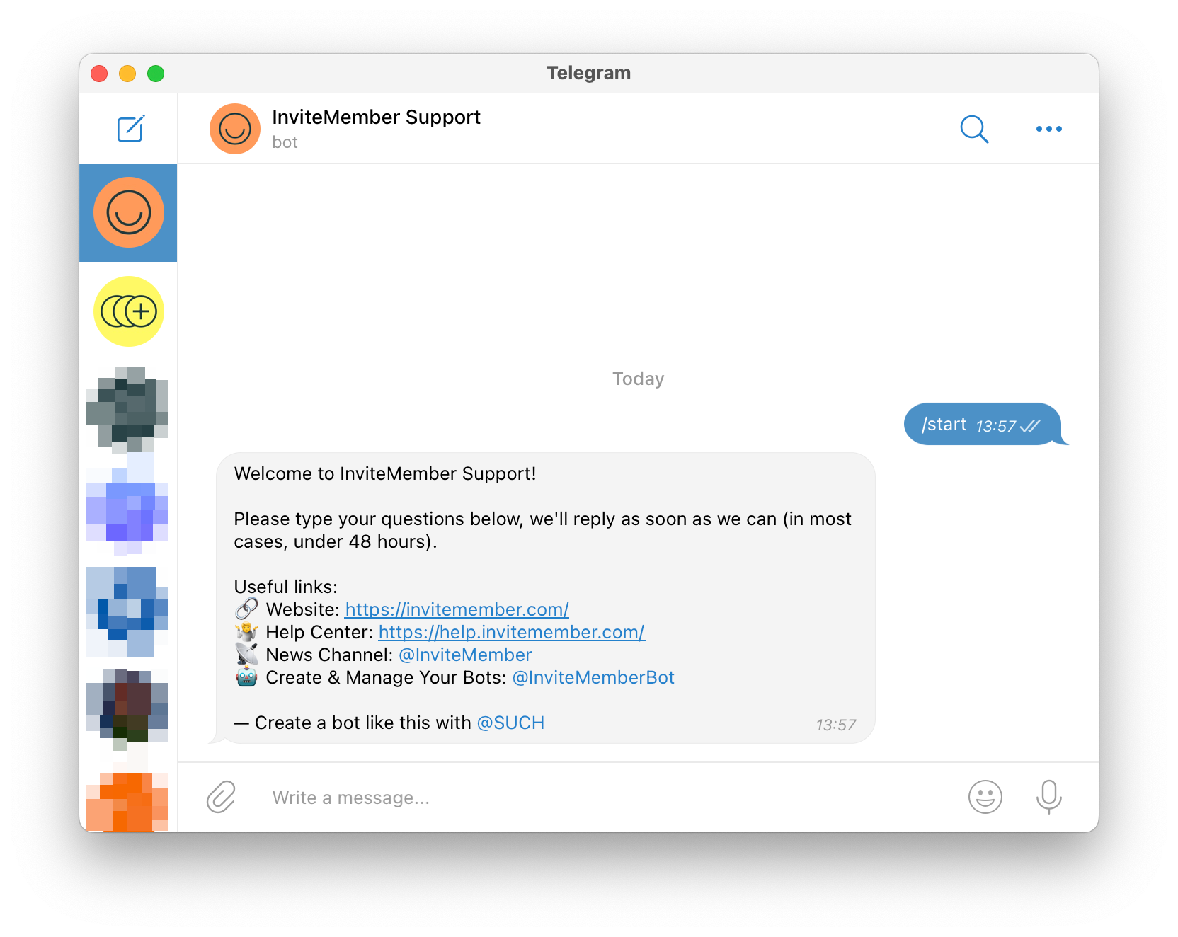 - Team Members Addition: Businesses can create support groups in Telegram, and add their support agents as team members to their SUCH account, fostering collaboration and ensuring that complex customer issues are addressed effectively.