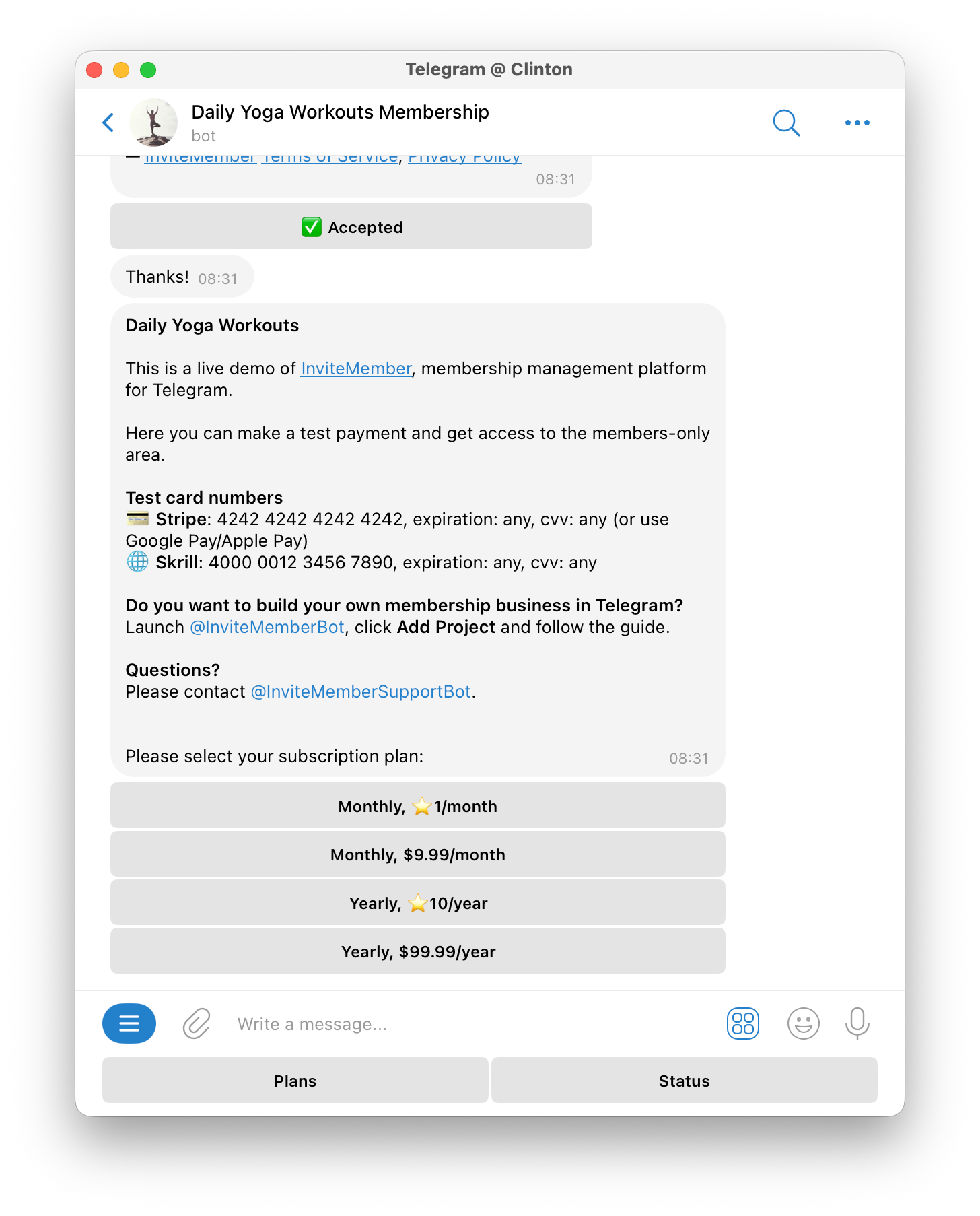 If your main revenue is going to be subscriptions, InviteMember provides the most complete subscription stack inside Telegram.