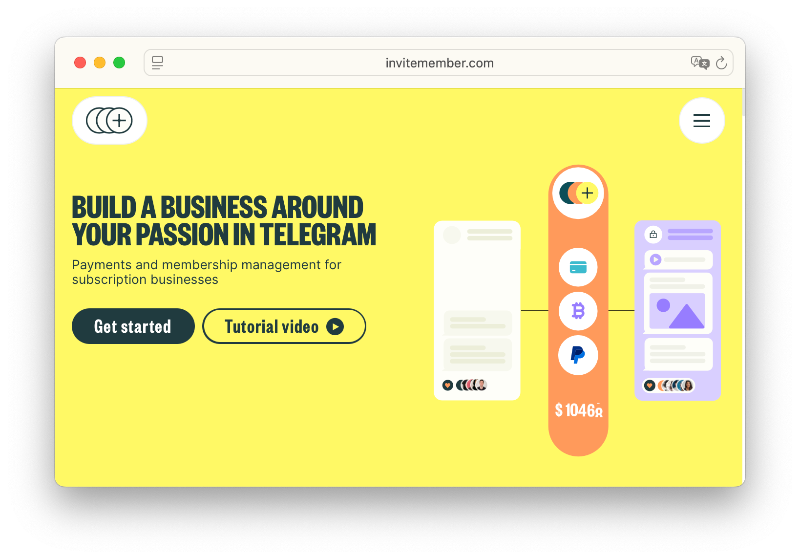 InviteMember is a membership automation platform that connects to Telegram via a bot and landing page, and controls access to private channels and groups.