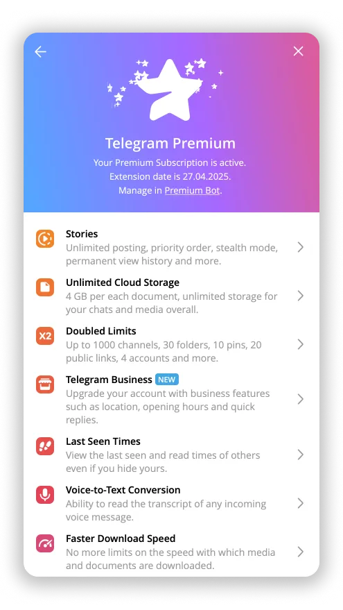 You don't need Premium to enjoy Telegram, but it's a nice option if you become a heavy user and want the added features.