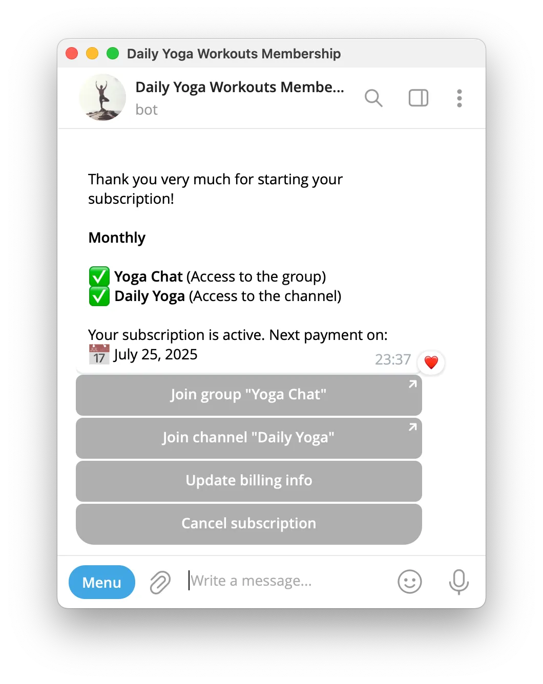 For many creators, the most lucrative and flexible way to monetize Telegram is by offering paid subscriptions to private channels or groups thanks to subscription bots.