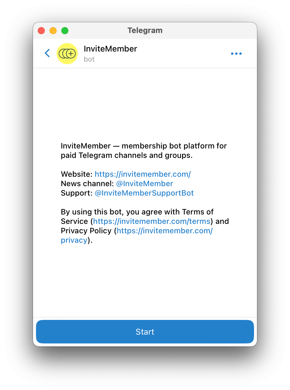 Subscription bots go beyond the limits of the Payments API and what payment bots can do, allowing users to receive recurring payments from their customers. The first Telegram subscription bot was the InviteMember bot. Among many things, this bot will help you create a membership-based business made up of private groups and channels and accept a wide variety of payment options for paying for your subscription plans.